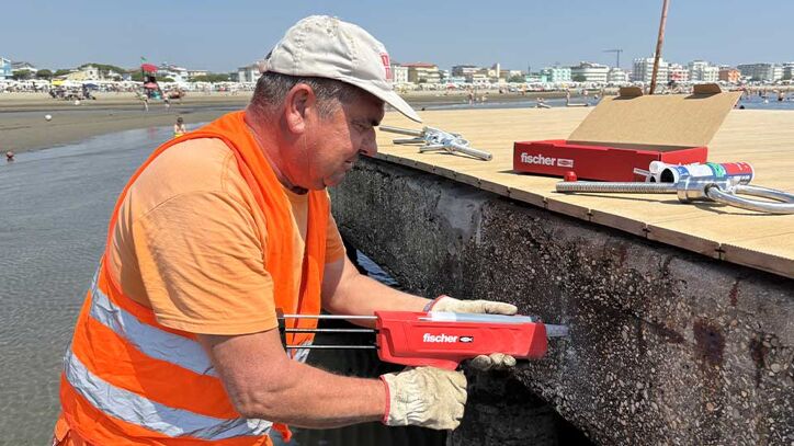 Per il consolidamento strutturale e il fissaggio di elementi soggetti a carichi elevati in ambiente marino, l’impiego della resina epossidica Fischer FIS EM Plus rappresenta una soluzione affidabile e certificata.